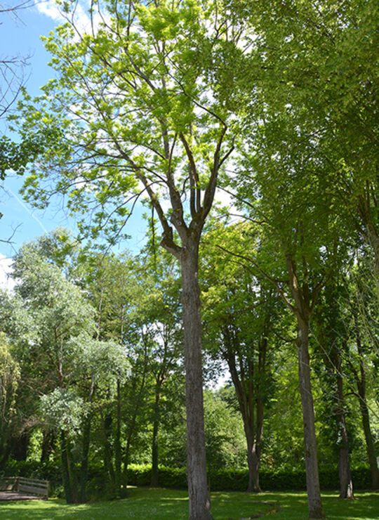 Noyer noirNom latinJuglans nigraFamilleJuglandacéesOrigineEst des Etats-UnisHauteur20-28 mFloraisonavril-mai