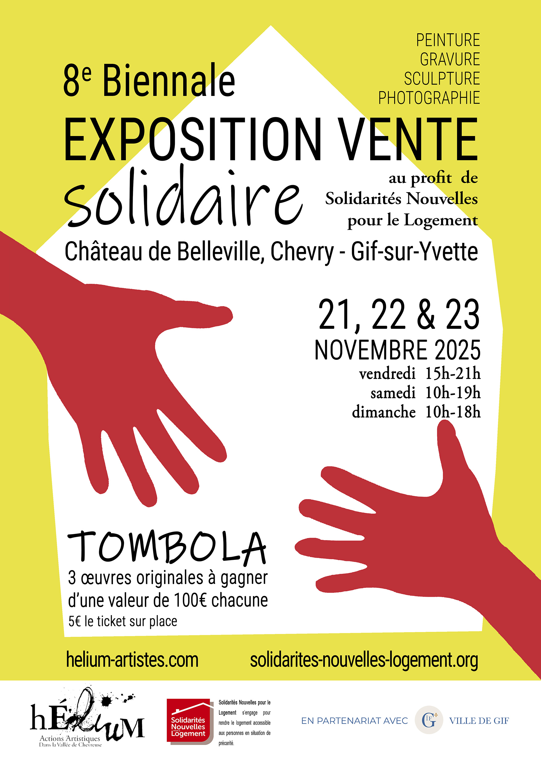 Découvrez la 8ème édition de la Biennale SNL Hélium dans le grand salon du Château de Belleville, un événement solidaire où l'art et la solidarité se rencontrent. Une quarantaine d'artistes participants à la biennale, reverseront 50% de leurs bénéficés au profit de Solidarités Nouvelles pour le Logement (SNL).